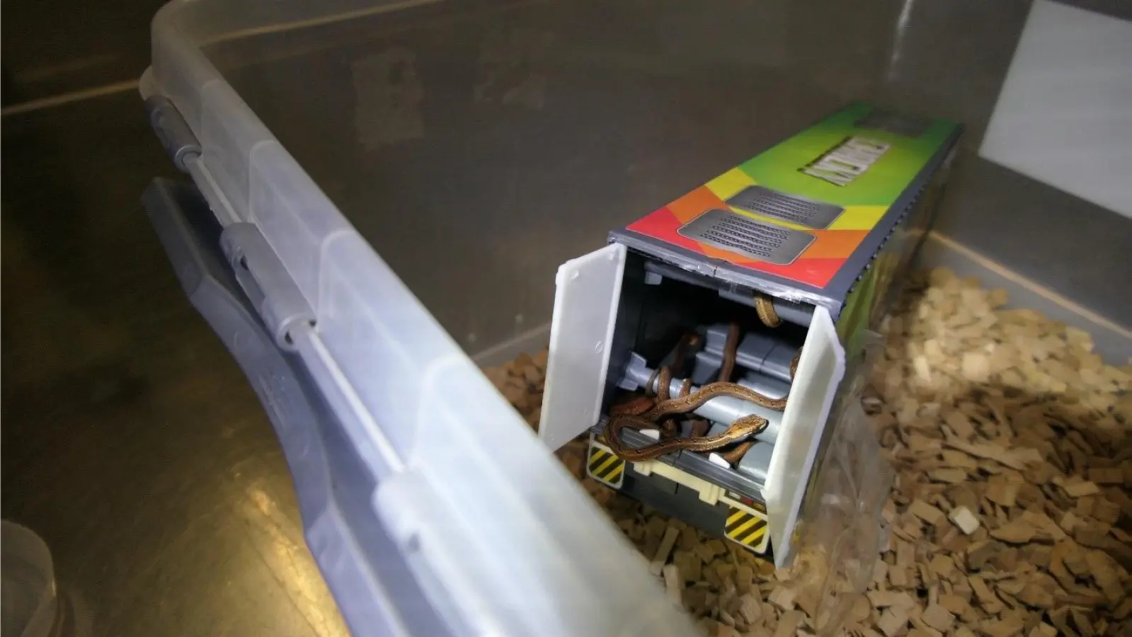 Der Zoll am Flughafen Leipzig staunte nicht schlecht, als er am 6. November eine Frachtsendung aus Indonesien kontrollierte, die für Großbritannien bestimmt war. In der Sendung, die laut Angaben lediglich Nudeln und zwei Spielzeugfahrzeuge mit Anhängern enthalten sollte, befanden sich stattdessen lebende Schlangen. Nach ersten Röntgenaufnahmen hatte der Zoll den Verdacht, dass in den Anhängern Schlangen versteckt sein könnten – und dieser Verdacht bestätigte sich.